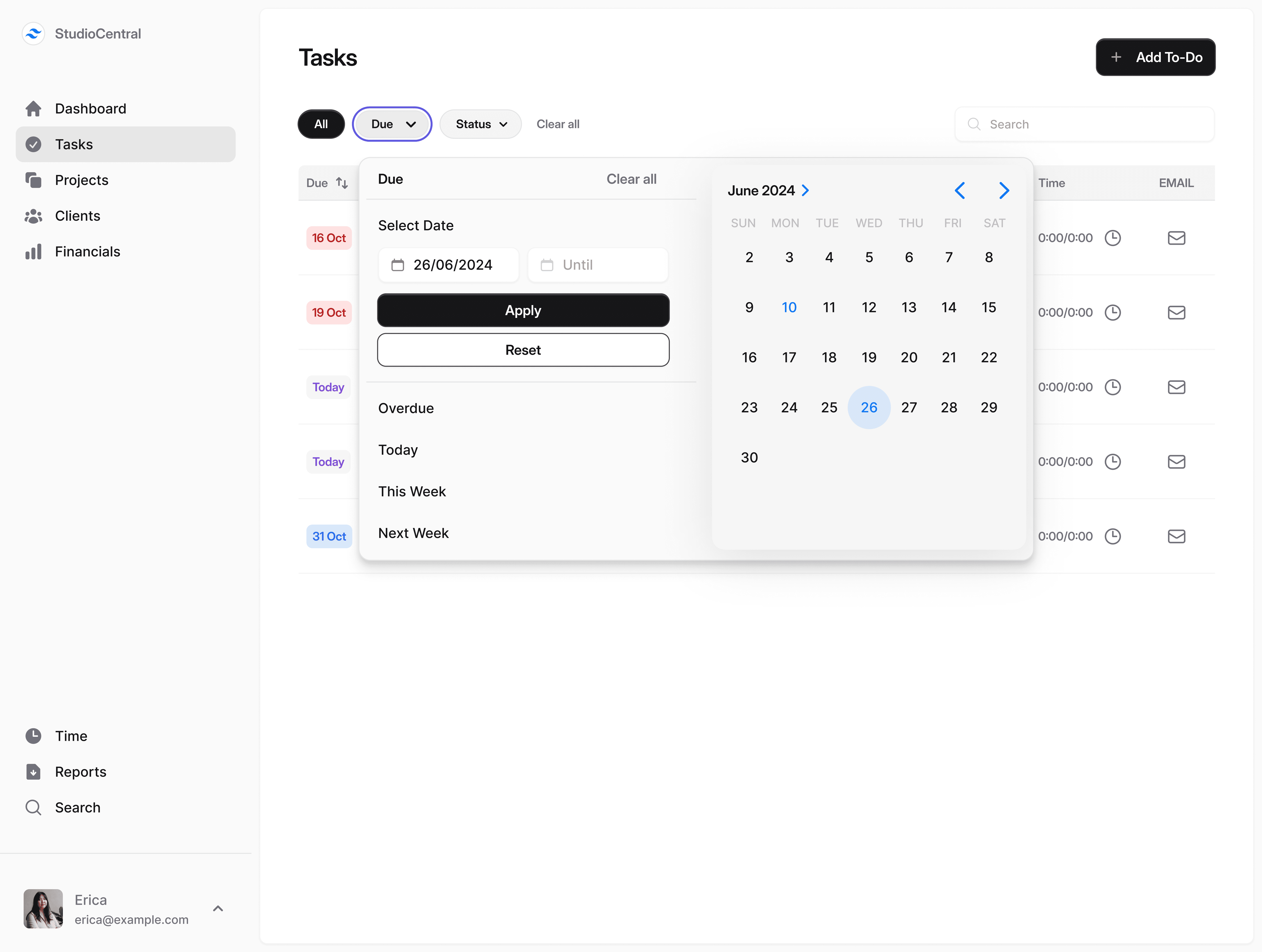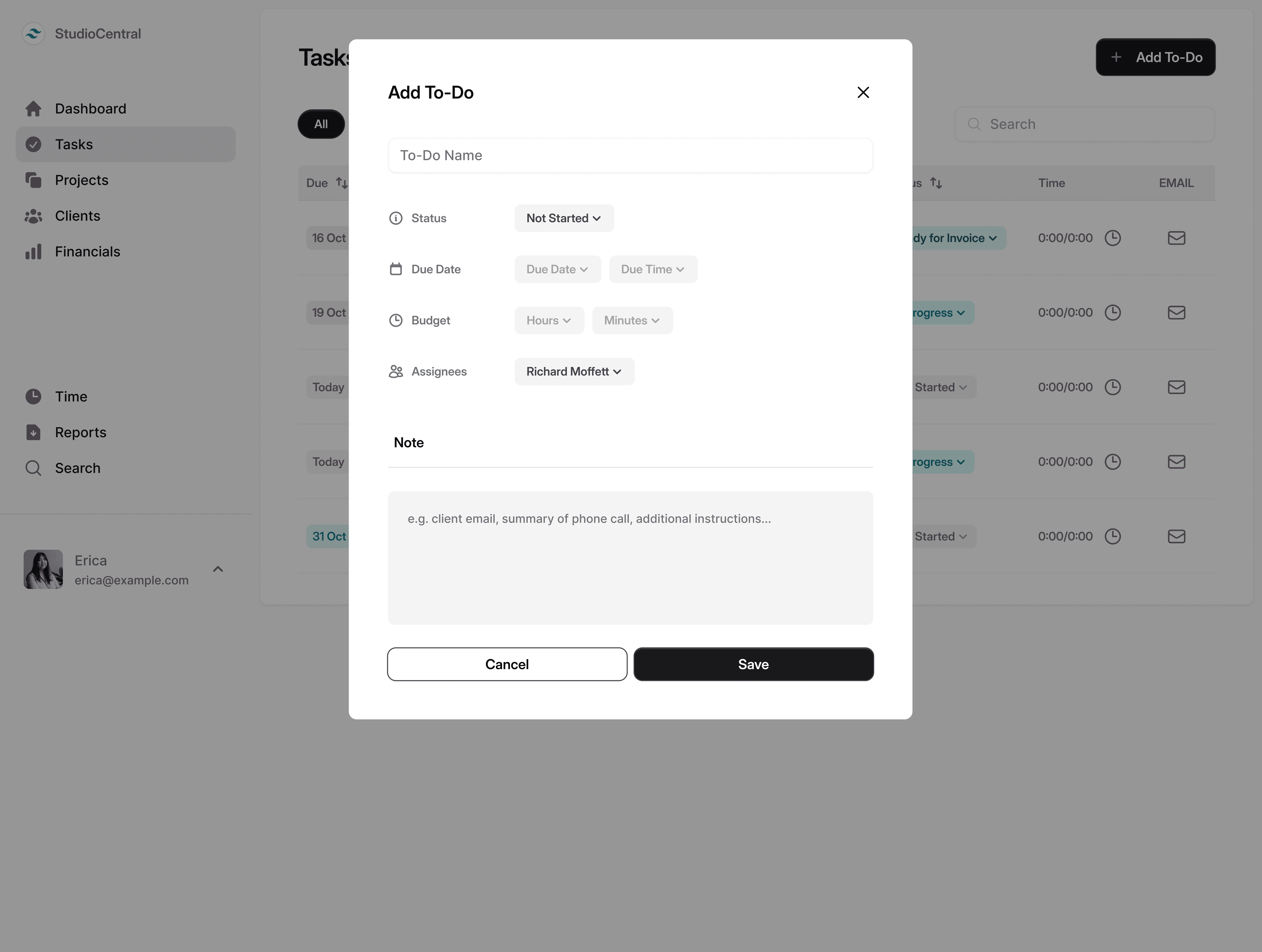 We delivered a clean, minimal, and highly usable custom CRM designed around task and project management. The interface allows users to quickly add to-dos, assign time, track progress, and filter projects with ease — all without overwhelming information. The result is an intuitive, efficient tool that keeps teams organized, improves focus, and makes managing tasks and projects faster and simpler, while providing clear visibility into project details at a glance.